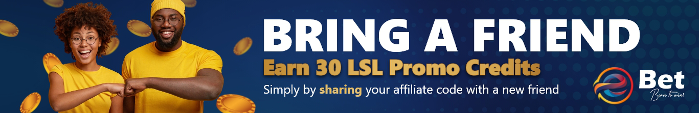 Exciting news for all sports betting fans! Get ready to share the fun with your friends and earn some fantastic rewards along the way. Introducing our "Bring a Friend" program where you can earn 30 LSL Promo Credits simply by sharing your affiliate code with a new friend.